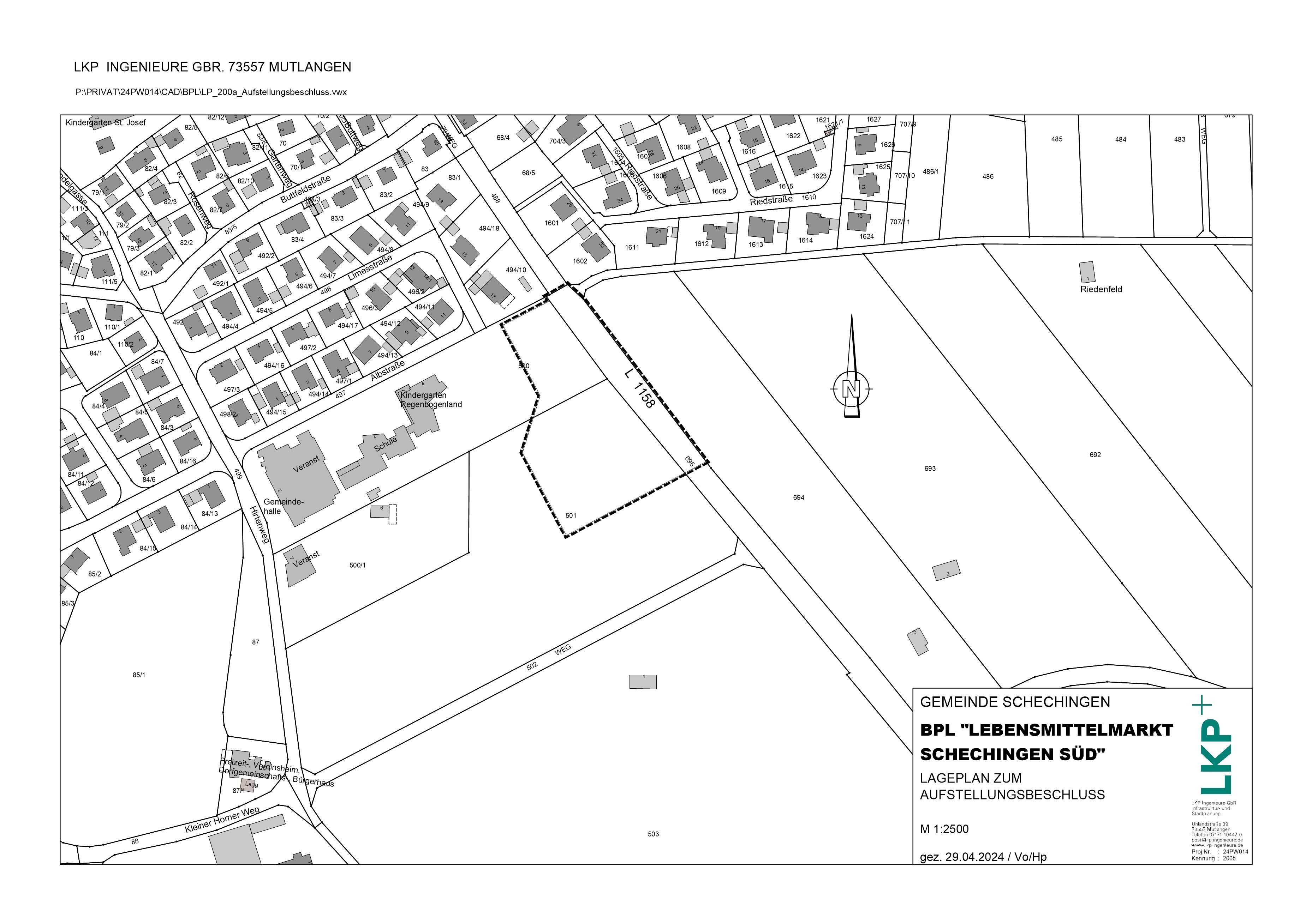 Der Gemeinderat der Gemeinde Schechingen hat am 16.05.2024 in öffentlicher Sitzung die Aufstellung des vorhabenbezogenen Bebauungsplanes „Lebensmittelmarkt Schechingen-Süd“ beschlossen. Der Geltungsbereich des vorhabenbezogenen Bebauungsplanes umfasst die Teilflächen der Flurstücke 500, 501 und 695 der Flur 0, Gemarkung Schechingen mit einer Gesamtfläche von ca. 1,85 ha. Maßgebend für die Abgrenzung des Geltungsbereiches ist der im Lageplan des Büros LKP Ingenieure GbR, Mutlangen vom 29.04.2024 dargestellte Geltungsbereich. Siehe folgender Kartenausschnitt.Ziel des vorhabenbezogenen Bebauungsplanes ist die Ausweisung eines Sondergebiets zur Errichtung eines großflächigen Lebensmittelmarktes. Dieser soll die Grundversorgung in der Gemeinde Schechingen sicherstellen.