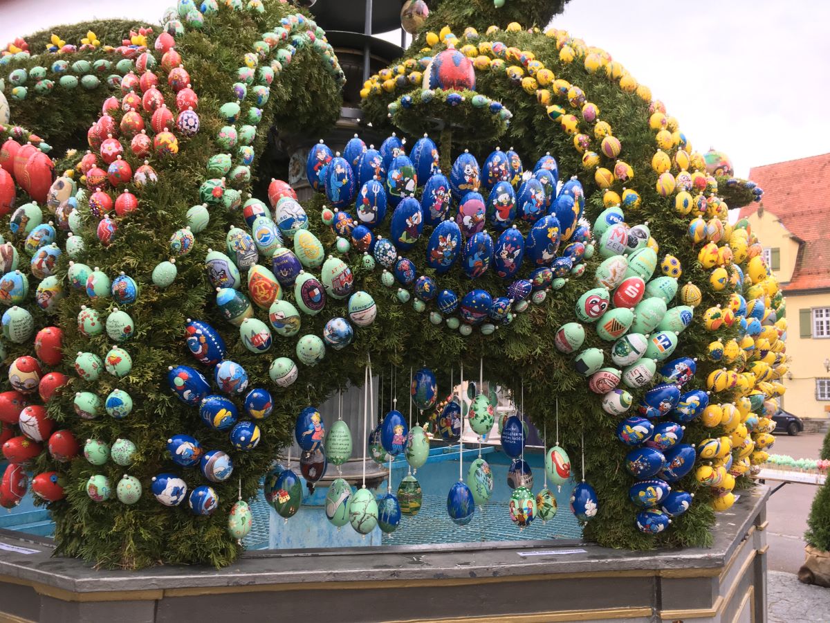 Ab Samstag, 2. April bis Sonntag, 24. April 2022 steht der Brunnen auf dem Schechinger Marktplatz.