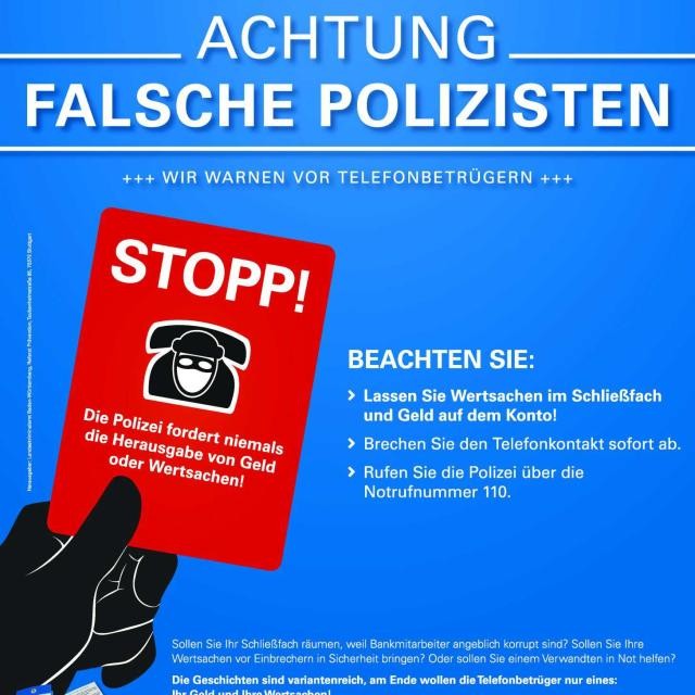 !! ACHTUNG !! Falsche Polizisten - Die Polizei Baden-Württemberg warnt vor Telefonbetrügern