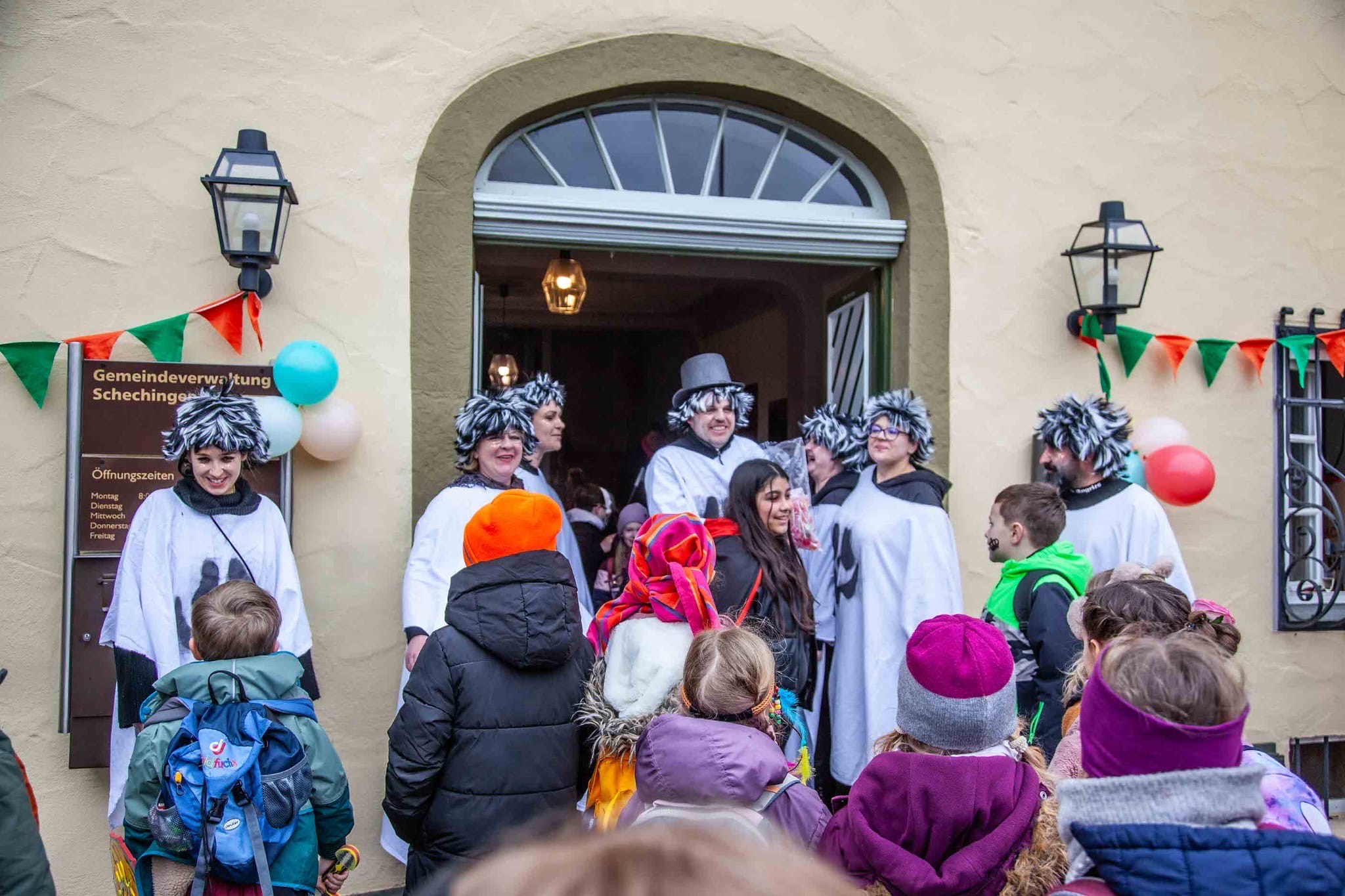 Am vergangenen Donnerstag stürmten die Schülerinnen und Schüler der Grundschule das Rathaus, banden Bürgermeister Stefan Jenninger an den Narrenbaum und übernahmen das Kommando in der Gemeinde. Unter Absicherung durch die Freiwillige Feuerwehr marschierten alle Schüler mit ihren Lehrkräften von der Grundschule zum Marktplatz, wo bereits einige Faschingsfreunde warteten. Die Abwehrversuche der Schlossgespenster aus Verwaltung und Bauhof blieben letztendlich erfolglos. Auch das Ablenkungsmanöver durch das Werfen von Süßigkeiten aus dem Fenster des Ratssaals blieb wirkungslos. Der Schultes wurde in Eisen gelegt und zum Narrenbaum geführt. Erst nach ausgiebigen Verhandlungen und der Zusage von Eis für alle am letzten Schultag erhielt er seine Freiheit zurück. Anschließend wurde noch eine Weile närrisch auf dem Marktplatz gefeiert.