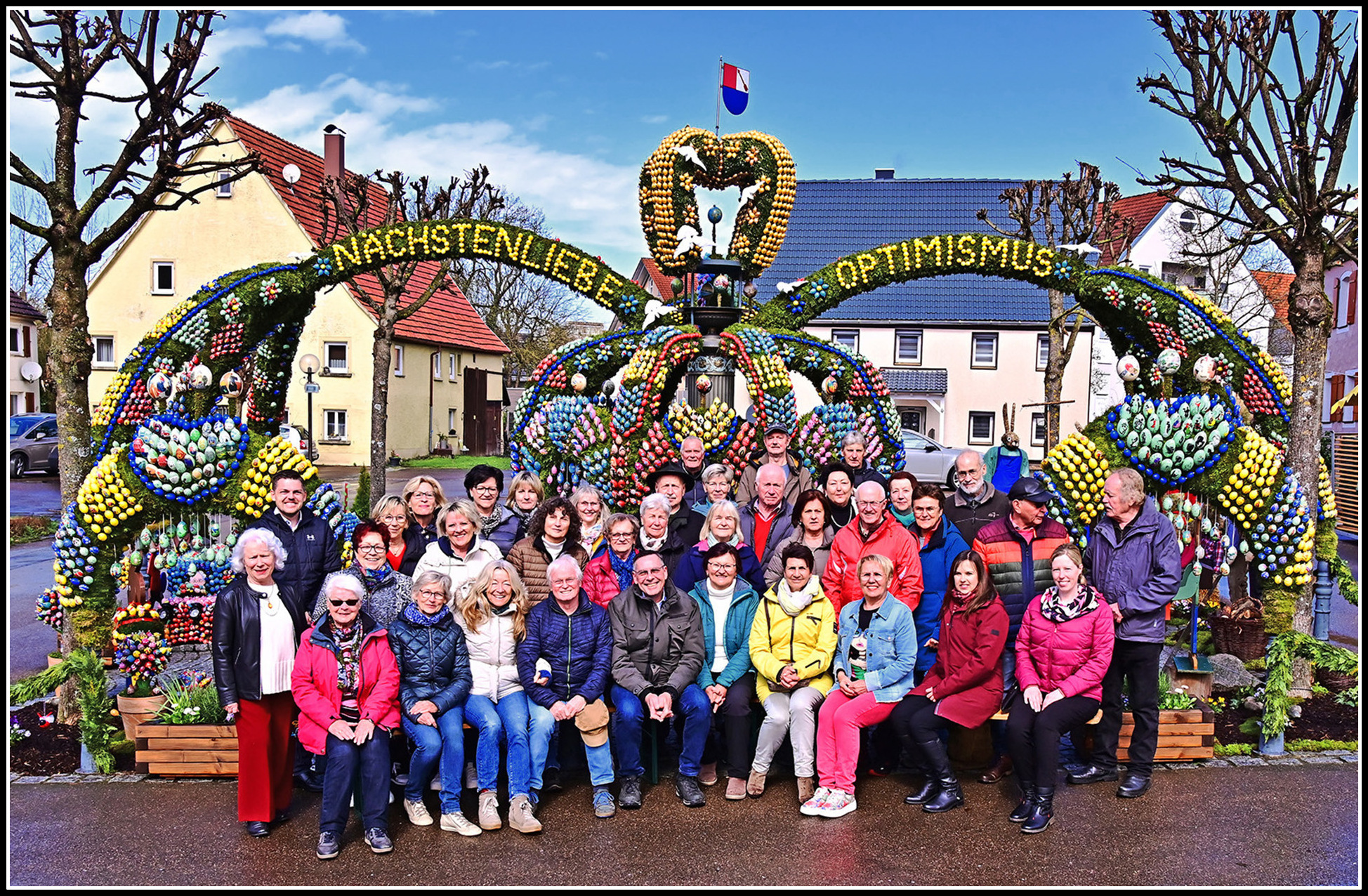 Osterbrunnen 2025 mit einem Teil der vielen ehrenamtlichen Helfer*innen von Helmut Bernernert