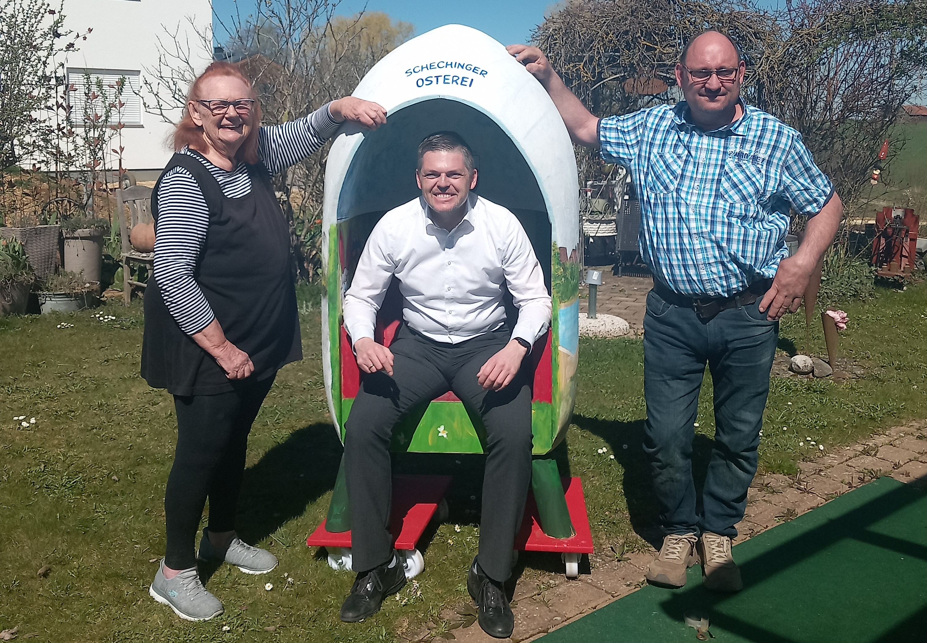Im Rahmen der Landesgartenschau 2026 in Ellwangen werden sich alle 42 Städte und Gemeinden sowie der Ostalbkreis den Besuchern an der Ostalb-Tafel im Bereich des Veranstaltungsgeländes auf dem Schießwasen mit einem eigenen Stuhl präsentieren. Der Stuhl der Gemeinde Schechingen – wie könnte es anders sein – stellt ein Schechinger Osterei dar. Der Stuhl geht auf eine Idee von Bürgermeister Stefan Jenninger zurück und wurde wunderbar künstlerisch gestaltet von Gemeinderat Dietmar Hirsch (Holz) sowie Jutta Weitzsäcker-Möhler (Bemalung). Herzlichen Dank für diese herausragende ehrenamtliche Arbeit. Hier wurden viele Ideen, viel Herzblut und viel Zeit in die Umsetzung investiert. Die Besucher der Landesgartenschau können die Stühle bis zum 2. Oktober bewerten. Die besten Arbeiten sollen am Tag der Deutschen Einheit prämiert werden.