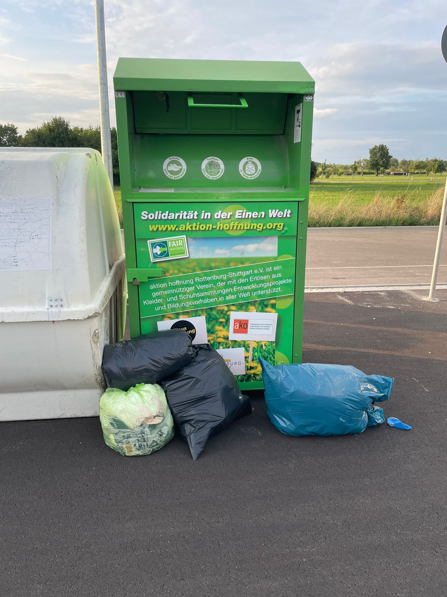 In der vergangenen Woche wurden nun auch am neuen Standort der Altkleidercontainer einfach Säcke davor abgelegt.